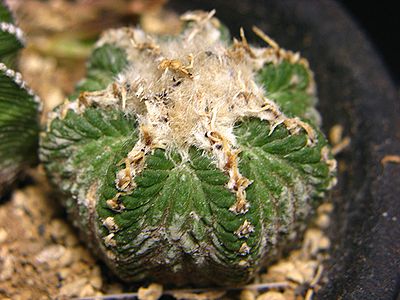 またまたお久し振りなこのテーマ。最初からご覧になりたい方はこちらから。 痛くないサボ ― (1) 痛くないサボ ― (2) 痛くないサボ ― (3)前回の牡丹に引き続き、お値段ちょっとお高めサボシリーズ。(私は運よくオークションでお値打ち価格で手に入れる事が出来ました)アズテキウム・花籠(Aztekium ritteri)です。サボテン中成長が最も遅鈍と言われている種類で、大きくなるまでかなりの時間を要します。ちなみにうちの花籠は直径3cm強ですが、これで実生10年以上だとか。せっかちな方には、あまりお勧めできません。牡丹同様、派手さはありませんが、薄いピンクのかわいい花が咲きます。(去年折角咲いたのに写真撮るのを忘れてた…orz)渋好みな人にお勧めなサボテンです。こちらは同じアズテキウムのヒントニー(Aztekium hitonii)。1992年にメキシコ中部で見つかった、新種のサボテンです。(発見された当時は、大変な話題になったそうです)こちらの方が成長も早く、育てやすい様です。 (ウチのはまだまだおチビさんですが)洗濯板の様な肌が面白いサボテン。どちらも普通の園芸店ではまず目にする事は無いと思います。気になった方は、サボテン・多肉の業者さんのHPやオークション等で探してみて下さいね。(私の「ブックマーク」からもいくつかの業者さんのHPに飛べます♪)