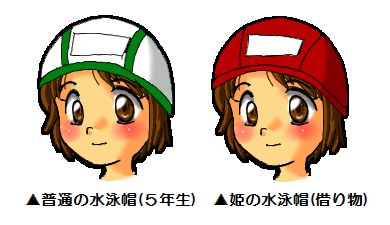 昨日UP出来なかったバックデイト日記。突然のインフルエンザ感染者発生の為、急遽中止となった姫達の水泳指導。期間途中でいきなり中止になったので、残念ながら去年の記録更新はならなかったみたいです(最後に見に行こうと思ってたのに…)今まで天気がすっきりしなかったのに、昨日・今日と、中止になった途端、良い天気になったのは何とも皮肉なものです。もう終わってしまった事に、とやかく言うのはどうかなとも思いますが、ちょっと一点、気になる事が…姫達の学校は学年毎に水泳帽の色が決まっていて(恐らく他の学校でもそうだと思いますが)、姫達5年生は緑色。(白地に緑の線入り)姫は「発作性の疾患(癲癇)がある」という事で、万一の事を考え水泳の授業の時は、分かりやすい様にとの支援学級の先生の提案で、赤い水泳帽を学校から借りて被っていました。5年生は姫の他に2人支援学級在籍の子がいるので、その子達も同じく学校がら借りている赤い帽子を被っていました。(2人は体がちょっと不自由なので)そして夏休みに入り、水泳指導に行く事に。この時も、姫は学校から帽子を借りるんだと思っていましたが、水泳指導は帽子を忘れていくと入れないので、念の為普通の水泳帽も持っていくことにしたのです。そしたらですね…普通の水泳帽でやってるんですよもしかしたら1日目だけ、「先生がうっかりしていたのかな」と思ったんですが、次の日も、その次の日も、ず―――っと普通の水泳帽でやってたみたい。今まで支援学級在籍の子は姫だけしか参加してなかったので、百歩譲ってそのせいなのかな、とも思ったのですが、一昨日もう一人支援学級の子が来て、姫によるとその子は赤帽を被っていたそうで……いや、3月以来発作は起こしていないし、水泳指導自体も学校の授業の時間よりは短い(※授業は2時間(90分)、水泳指導は1時間)ので、別にいいんですけどね…(本人も「目立つからイヤ」って言ってたし)でも何となく、急に手の平を返した様な対応がどうにも気になって・・・時間にしても30分くらいしか違わないし、リスクもそう変わらないと思うので、授業中に赤い帽子を被ってた意味は?と思う訳ですよ。「ちょっと聞いてみようかな~」と思っていたところ、例のインフル騒ぎで中止になってしまったので、結局どういう事なのか聞けずじまいでした。来年は…どうなるんでしょうね。発作は「絶対無い」とは言い切れないので、確認しておいた方がいいのかな?