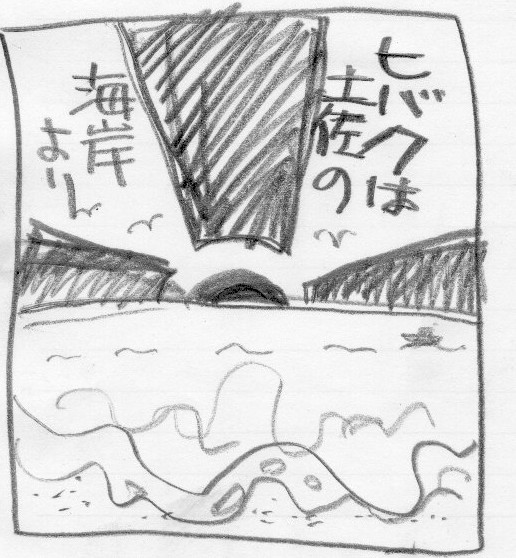 (思うところあって、書き方を少し変更いたしました。2007.3.3)こんにちは、いいお天気ですね。やまげんです。「自由は土佐の山間より」土佐出身の自由民権運動理論家、植木枝盛のことばです。明治10年。ちなみにこの人は「ひとのうえにはひとはなき、権利にかわりがないからは」ということばも残しています。ん~。土佐っぽ代表やねぇ。さて昨日、ブログ友達(略してブロギュー)のところで『反核も自由の山間より』というロゴのTシャツを買った。という話を読みました。ロゴを私も考えて、そこに『原発勘弁』と書き込みました。すると次にこられた方が『被爆は土佐の山間より』と書き込んだ。被爆は土佐の山間より・・・。どうぞ勘弁願いたいけど、それよりもものすごいインパクトに感動。うーん。ロゴたるもの、このくらい過激じゃないと響かんかも(↑それはどうか。)そのインパクトを絵にしてみようと描いていて、待てよ、山間(津野町)はなんとかなったよな、いま危ないのは海岸・・・ということでうーむ。力強く描けば描くほどイヤすぎる・・・。みんな、こんなことにならないように、がんばろーね(泣)。