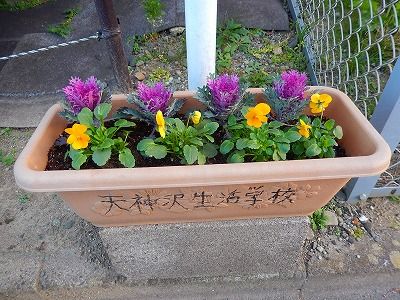 12月31日、6ヵ所の家庭ごみ集積所のプランターに松とお正月飾りを飾りました。今年は雪が降らないので花が長持ちして助かってます。