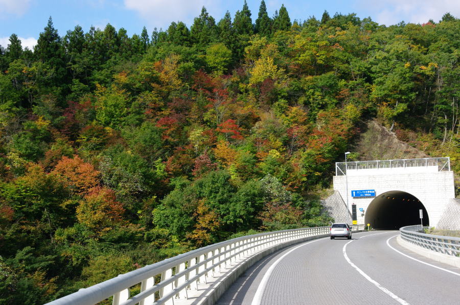 2010/11/4先日ラジオで、冠山峠を越えて、福井県側に行けるようになったと聞いたので、雪が降って通行止めにならないうちにと、岐阜県の徳山ダムを抜けて、冠山経由で福井まで紅葉を求めて走ってきた。しかし、今年の紅葉はあまりよろしくないのか、時期が遅かったのか早かったのか分からないが、期待したほどではなかった。岐阜県側では多少良かったが、冠山の峠山頂辺りからは残念ながら遅いかなと思った次第。徳山ダム湖の橋、トンネル。冠山はここを抜けて行く。ところどころ小さく紅葉している。冠山の姿。なるほど冠を冠ったように見える。冠山峠から遠くに見える徳山ダム湖。峠山頂付近から見た冠山の姿。岐阜県側から見たのとは全く違う姿。当然だろうけど.......峠山頂に建つ碑。後ろには冠山の山頂。峠山頂近くの紅葉の状態。この後福井県側での紅葉はほとんど見られなかった。道路はカーブが多くて、かなり危険なところもあり運転には注意が必要だった。雪が少しでも降れば道路封鎖されるでしょう。
