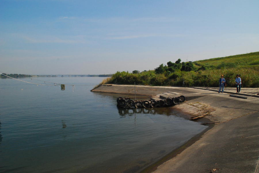 西中野渡船岐阜羽島市と愛知県一宮市を隔てる木曽川。その木曽川に今も県道稲沢・羽島線の一部として渡船が運航されている。以前、その辺りは木曽川を渡る手段が渡船であったが、濃尾大橋や馬飼大橋が架けられて、渡船の役目はほぼ終わったかのようだが、現在でも愛知県と岐阜県が折半で運航を維持している。現在では観光スポット的な要素を含んでいるが、片道7分ほどのミニ船旅を、廃止されないうちに一度は乗って体験してみたいところである。ただし、荒天時、増水時等危険とされる時は休航。船頭さんの居る小屋は一宮市西中野にあり、対岸の船着き場の羽島市側は無人である。そんな体験をしてきたのでここに報告を.........渡船動画はここをクリックしてくださいゆったり流れる木曽川の一宮側の船着き場前方に小さく見える橋は新幹線用の橋。一宮側から対岸の羽島市側を見る。対岸の船着き場は少し左で、写真では見えない。客の要請により出港準備船頭さんは4人で毎日運航している対岸の羽島市側の船着き場を望む羽島市側に到着で下船する乗客と船頭さん羽島市側には整備されているチョットした公園がある羽島側から一宮側へ渡るには、白い旗を揚げると、迎えに来てくれるここでは時間がゆっくり流れているような雰囲気。また出掛けてみたいスポットである
