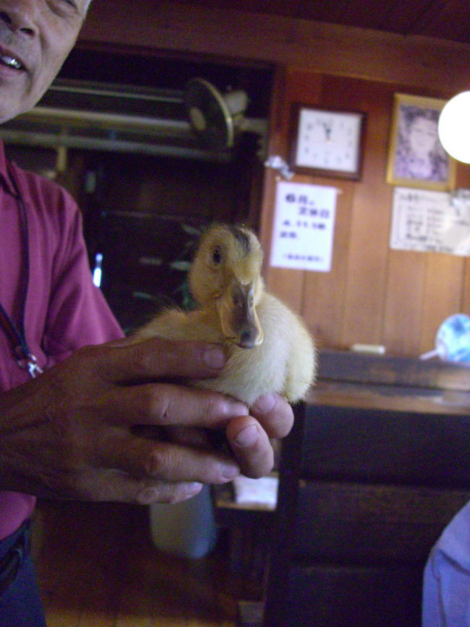 今回は何時もと違う記録を........成人学校で、古代米の黒米を作るを受講している。籾巻きから収穫までの一年間だが、田植え、稲刈り、脱穀全てを手作業で行っている。もちろん一切の農薬を使わない米作りなので、収穫した黒米は安心して食すことが出来る。また、それとは別に、講師の先生はアイガモ農法を実践して、岐阜県のハツシモを作っている。アイガモは田の草を食し、糞は肥料に、また田の中を歩くので適当に根に酸素が行き渡る。良いことずくめである。秋になると成人になったアイガモは卵を産む。今年もその卵を一個頂いたので、早速雑炊に入れて頂くことにした。そんな記録を........アイガモ農法に活躍してくれるアイガモのお子ちゃん。もう少し大きくなったら田に放つ。あまり小さいとカラス等の餌食される。稲刈りも近付いて、そろそろ役目を終えて御苦労さんでした。アイガモは飛ぶ羽根を持たないので走るのみである。アイガモの卵。鶏卵のL寸くらいの大きさ。有精卵なので黄身もしっかり盛り上がっている。今回は雑炊を作りその卵を入れた。最後にニラを入れて完成。美味かったよ~!