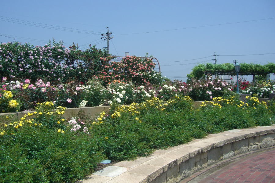 岐阜県揖斐郡大野町に、大野町バラ公園が作られている。この5月6月はバラも咲く時期で、ここ大野町バラ公園も、200種類以上のバラが見ごろを迎えている。昨年はバラの咲き具合が良くなかったのだが、今年はバラには気候が良かったのか、見事な花を咲かせていた。バラは春と秋の年2回咲くが、やはり春のバラの方が花が大きくて良いですね。バラの種類、数は「可児花フェスタ」には太刀打ちできないが、大野町はバラの苗生産は日本一と言われる。入園料、駐車場は無料。尚、大野町バラ公園のバラをホームページに、 30枚ほど載せてますのでご覧ください ここをクリックして下さい。バラ園内の一部駐車場の横で、苗を販売している