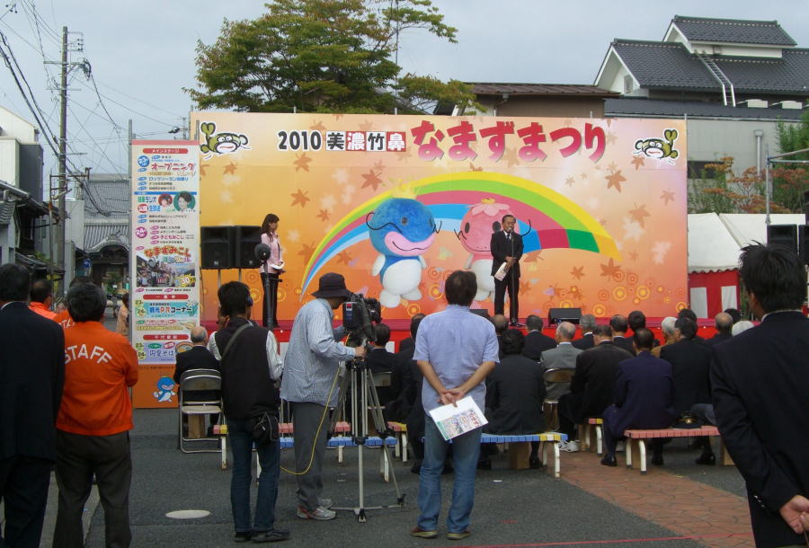 岐阜県羽島市の秋祭り「美濃竹鼻なまずまつり」と名うって今年も10/23・24の2日間開催された。神輿コンクール、歌謡ショー、フリーマーケット、他さまざまなイベント等で賑わい見せた。その中の子供イベントの部分、ゲームコーナー等をボランティアとしてサポートしてきたので少し紹介を.......それぞれがワンコイン(¥100)だが、ゲーム券は販売所で購入するようにしていたので、各コーナーでは現金を扱う必要が無く、お釣りを出す煩わしさも無くてGoodだった。(良いアイデア)祭り開会に当たり羽島市長の挨拶が.......初日はよい天気に恵まれて多くの人出を予想。2日目の午後から雨になり、ちょっと残念でした。少し時間が早いので人出もまだこの程度かな!綿菓子・ポップコーンの販売コーナーわなげコーナー (手作りの道具が良いね)水ふうせん釣りコーナー射的 的にはペットボトルも使われていた(良いアイデア)スーパーボールすくい。金魚すくいと同じ方法で.......我々はここを担当した。2日間で450人以上の子たちが来て、最高で一人35個すくった子がいた。大道芸も披露していた2日目には神輿コンクールがあり、優勝賞金30万円とか。結果を見ずに帰ってきたので優勝を見逃した。