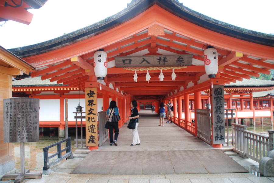 国宝であり、世界文化遺産である厳島神社の Part2です。参拝入口 275米の回廊で結ばれている。国宝・高舞台本殿を見る祓い殿厳島神社のシンボル、大鳥居 高さ16米 材質 楠木自分の重みだけでで立っているとか。大鳥居、横から見るとこのようです。次回は Part3です。