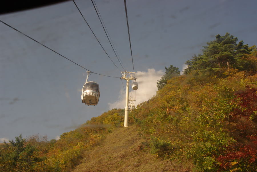 10月中旬、冬間近の八方尾根へゴンドラを乗りついて空中散歩に行ってきた。上の方の紅葉はほとんど済んでいたようだが、中ほどは今が旬の紅葉状態。リフト最終地点、八方尾根からの白馬三山他の山頂付近は雪が積もり、見事に三段紅葉を見せてくれていた。この日は風も無い良い天気に恵まれて暖かく、標高1800mからの眺めは最高なロケーションで、十分楽しませてくれた。更に第二ケルンまでの一時間ほどをトレッキングをしたかったが、装備も時間も無かったので残念ながら諦めた。ロープウエーのゴンドラから撮った画像だが、窓が汚れているので見難い画像だった乗り継ぎのリフトは高所なので、さすがに風はちょっと冷たい途中は紅葉がきれいであったリフト乗り継ぎ地点から眺めた白馬三山。雪が積もり冬山を感じたリフト最終地点から眺めた景色。天気が良かったので遠くまで見渡せた標高2903mの白馬鑓ヶ岳(はくばやりがたけ)水溜りに写った白馬鑓ヶ岳他観光用に2人乗りのパラグライダーが.......15分ほどの空中散歩で?万円だった