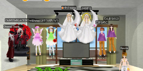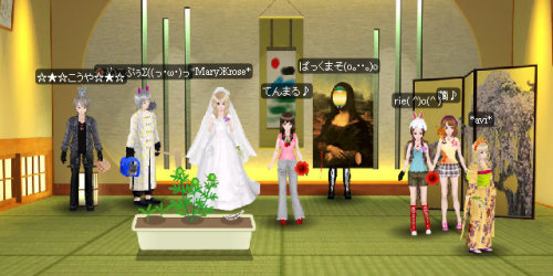 偶然って、重なるんだねー。☆彡mamaさんのお部屋に遊びに行ったら、先日同様、ペアペアになったので写真撮影をしました。撮影の間にも、次々とお友達がお友達が訪ねてくるのですが・・・。途中、飛ばされちゃったりする人もいたりしながら・・・。そうしたら、私と同じ衣装が3人になったので、びっくり!慌てて撮影したら、タイミング良くうまく撮れてました!私の場合、この日宝箱の当たりが出て、衣装も変わっった所だったから偶然に感謝です。