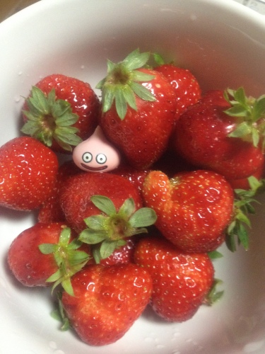 またまた、一週間がたっちゃいました~てんまるが、おやつを食べない日って、いつかあるんだろか・・・・。5月30日(水)今日のおやつはさちのかって言ういちごだよん♪どうぞ~徳島産です。新鮮なのは何でもおいしい!。スライム置いてみた~5月31日(木)今日のおやつは冷え冷えコロンだよん♪どうぞ~冷え冷えがいまいち解んない~冷え冷えを感じなかったけど・・・。好きなのでま、いっか。6月1日(金)今日のおやつはフランのショコラだよん♪どうぞ~これも鉄板です。6月2日(土)今日のおやつはメローンぱんバナナカスタード味だよん♪どうぞ~チョコ入りってなってるのにクリームじゃん!バナナカスタード味のチョコかと思ったけど、チョコじゃなかった~この表示は変だよぉ!?(初物)6月3日(日)今日(昨日)のおやつはポロショコラだよん♪どうぞ~かなり濃厚なショコラケーキだよ~6月4日(月)今日のおやつはパンチップスベーコンペッパー味だよん♪どうぞ~やっと、食べれた!ピリ辛です。ただし、前回のと味が違うよ~前は濃厚ピザ味、今回のはベーコンペッパー!どっちも、美味しいです。ちなみに濃厚ピザはまだ食べてない・・・・(T_T)(初物)6月5日(火)今日のおやつはベビ天ピリ辛だよん♪どうぞ~めっちゃ、辛い~ ベビースターラーメンを揚げたものだって。(初物)7週目更新しました~多分、まだまだ続くよ~
