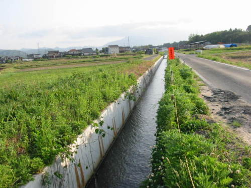 1昨夜は、うだるような日中の余熱があり、水べの草も、乾燥していました、 ホタルがほとんどいなくて、まだ早い時期かなと思っていましたが、昨夜は、霧雨が時々ある天気でしたので、飛んでいました。 今まで、両岸から繁茂した草に覆われたこの小川が一番のホタルの住家でした。 立派なコンクリートの川になったので、ホタルの住家は、この川に流れこむ小さな奥の溝川になったというわけです。 だから、炎天で湿気のない日は住家の草が乾燥して、根っこの土にへばりついて、ヒカリもかすかの状態だったのです。 待ちに待った山陰自動車道の即線北条湯原道が北野天神さん下までのびてきていますので、倉吉市街地からの連結道が作られています。 打吹山のすそ野から立派な道路が作られています。 片田舎の中に新風がきますが、ホタルさんには、居住が変更になります。 まだまだ、田んぼはありますから、住みやすい場所をつくってやらねばなりますまい。 公民館の集落支援員さんが、ホタルの里作りに参加しませんかという呼びかけは、時期をえたもののようです。左端が北野神社の森です。その向こう側を高速が走ります。