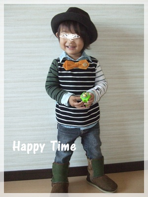 GCのPN見に行ってきましたなんとかブーツでごまかせないかと相談して店員さんの全然大丈夫のお言葉で決めてきました!!サイズ110で下げて穿いてます。普通に穿くと微妙な丈になるの分かります?(笑)ブラックデニムよりブーツが隠せないからほぼ丸出しですが店員さんに子供のブーツはアリよって教えて頂いたのでこの格好で出席しようと思います全身だとこんな感じ。 皆さんのアドバイスのおかげでやっと決まってほんとに助かりました!!ありがとうございました長男の↓で書いた話の続きですww幼稚園から帰ってくるなり『先生にチューされた~』とデレッデレな長男よかったね~なんて言ってたら先生がわざわざ電話してきてくれてました。『あの~コレってもらっちゃっていいんですか?』と。長男が先生の誕生日だから自分のお小遣いで自分で選んで買ったものだと伝えたらめちゃくちゃビックリされました(笑)なんでも幼稚園では『これディズニーストア行ったからあげるわ!』と言ってたらしくお誕生日おめでとうとは言わなかったらしいの!!私にはお誕生日だから買いに行くって言ってたのに先生本人にはまるでたまたま行ったからあげるわ!みたいな渡し方だったそうですテレてんのか!?先生にチューされたこともめっちゃ嬉しそうに話してたくせに幼稚園ではイヤーって逃げたそうなww今日はその先生からお礼のお手紙もらって帰ってきてご機嫌でした。天邪鬼な男だわ