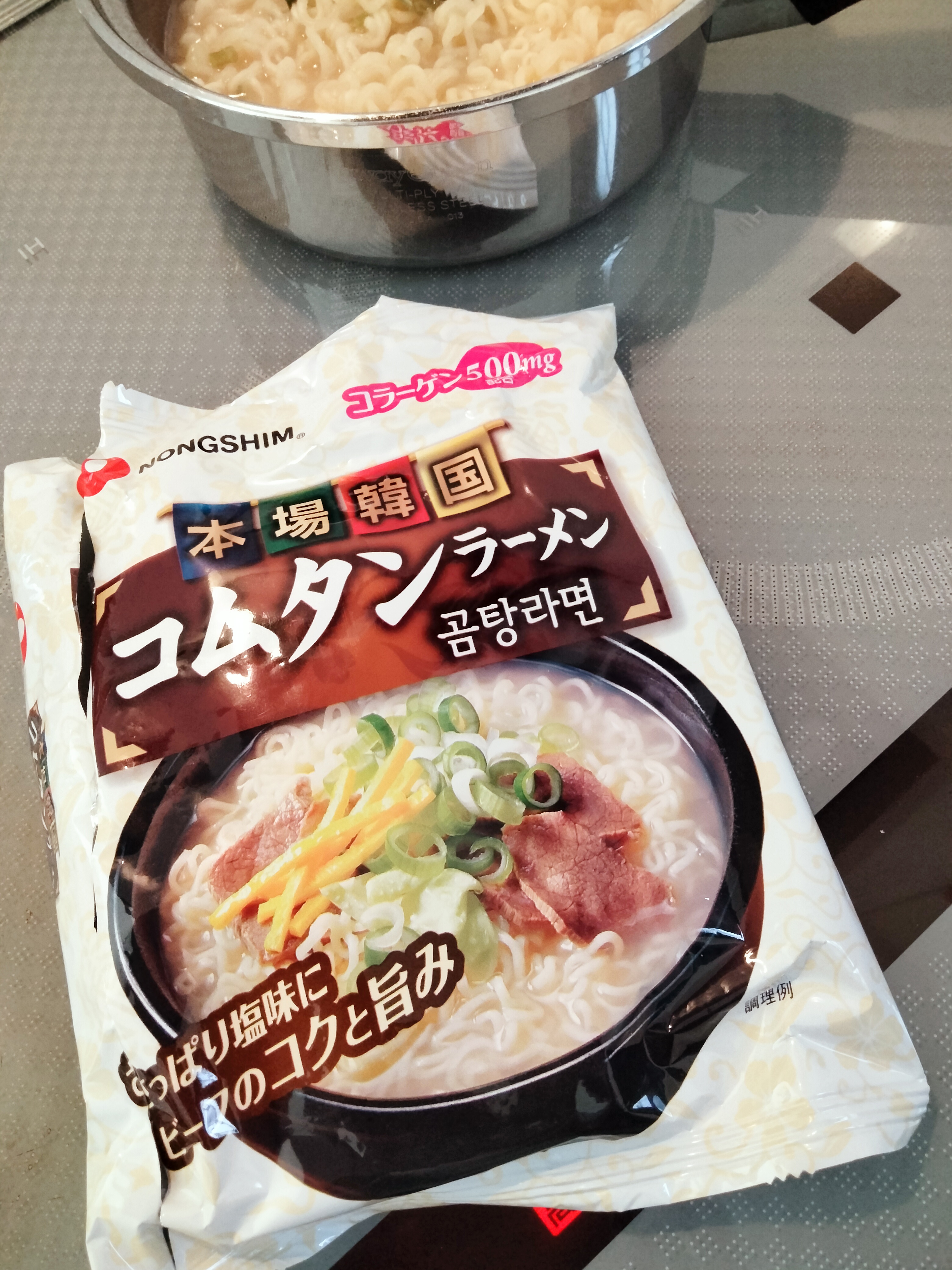 先日スーパーで前から気になっていたコムタンラーメンっていう韓国のラーメン買ってみました!ドキドキしながら食べてみたんですけど、美味しかった✨韓国のラーメンは、辛ラーメンと辛ラーメンのキムチ味しか食べてこなかったけど、コムタンラーメン、リピ買い決定しました!牛骨スープがあっさりと日本人でも食べやすいと感じました。まだ食べたことない方、ぜひ食べてみてください😊送料無料で楽天さんにもありました♪⇧送料無料10袋も買って、口に合わんかったらどうすんねん!って方は一袋ずつ購入できるこちら⇧(送料はかかります)これは⇩大好きすぎる辛ラーメンキムチ味✨カップ麺タイプもあるけど⇩やっぱり私は袋麺の方が断然美味しい気がします✨最後に玉子一つ入れて食べるのが鉄板です!チーズも入れたいところだけど、カロリーおばけになってしまうのでたまぁにだけっ(笑)韓国ドラマにハマっている時は、ホントにしょっちゅう韓国ラーメン食べたくなってしまって困りました(笑)ゆで卵と野菜を炒めてのせたボリュームたっぷりコムタンラーメンを中3男子の息子に出したら美味しいって完食でした♪