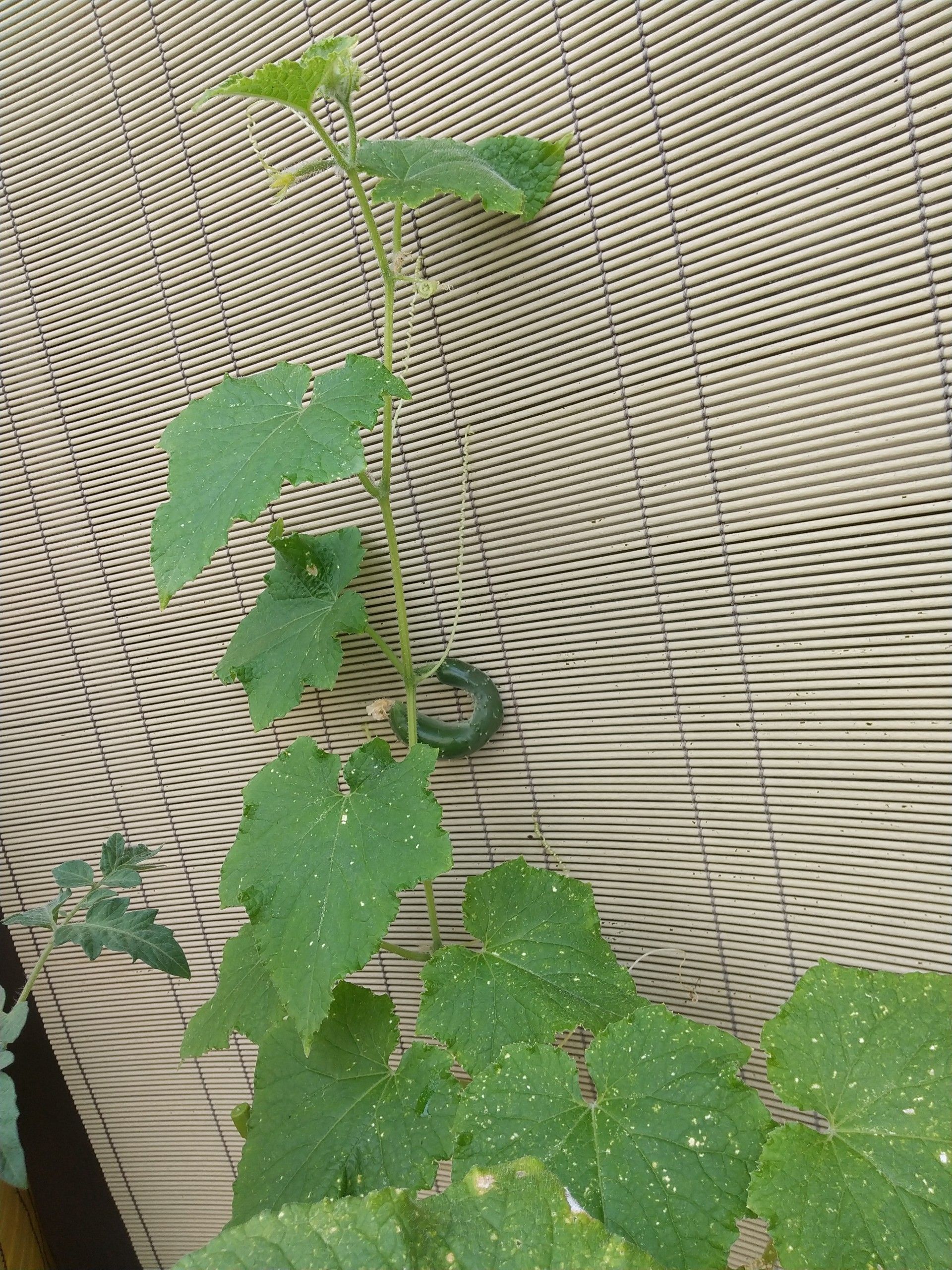 きゅうりとミニトマトが出来て2週間位になるかな? 茄子も濃厚で、美味しかったと主人曰く。 但し、きゅうりがイマイチです。こんな感じで育つのかなぁ? ⬇️