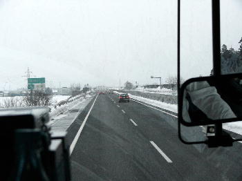 やっぱりとてもいい天気。風は冷たいけれど、寒くは感じない。1時間ほど早く池袋に着いたので、キンカ堂をウロつく事に。キンカ堂というところが、我ながら渋いなぁと思うが、大荷物でビックカメラもな、あそこ、階段狭いから迷惑になっちゃう。かと言って、西武に入っていくのも面倒くさい。はぁ~、いいなぁ、この品揃え。何のかんの言って、マニアックという点では、東京には敵わないんだよね。これが人口の差というものかもしれない。実を言うと、吉祥寺のユザワヤにも行きたいのだが、なんつーか、途方も無く買ってしまいそうなので、キンカ堂ですら手を出しそうなのに、ユザワヤなんか行ったら、歯止めが利かなくなるやんか。^^;※キンカ堂を知らない人の為に濃い目の手芸用品を置いてある店で、狭い割りに品揃えがよく、特に、DMCの糸や用品を扱っているので、ポイントが高い。あっと言う間に1時間経過。でも、安心、目の前が高速バス乗り場、5分前に乗車完了。/^^席は何と『B1』。一番好きな席です。^^早速カメラを取り出して、しゅっぱーつ!都内、ピーカン、混み具合は、まあ、こんなもんでしょう。高速道路に乗りまして。第一休憩ポイント、上里SA。前橋まで、あと4Km地点。ほんとにいい天気で、しかも、ぽっかぽか。やけに、咽が渇くよね。^^;ここは、関越自動車道の中でも、美しい景色が見られるポイント。そろそろ本格的な山道です。そして雪。路面状態がガラリと変わる恐ろしさ。^^;魔の除雪渋滞へ突入。外の景色は、こんな感じ。関越トンネル手前猛吹雪。^^;トンネルでやっとホッ。さすが関越、この変わりよう。関東との違いをまざまざと見せ付けられる。