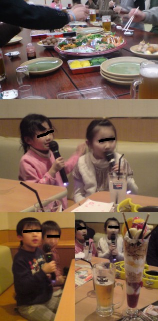 近くの日帰り温泉に宴会場を一部屋借りて、このところ正月恒例となったいとこ会に出かけて来ました。飲み始めが4時と早かったので、7時30分にはカラオケBOXでの2次会になだれ込み、大盛り上がりでした。子供たちはマイクはなさず大人は唄えずでしたが、来年も続くといいな。。。"2008年間目標:55km/月以上!"月間走行距離 74.7km(実績) / 55.0km(目標) 達成率 135.8%(4/20 温海さくらマラソン 10km終了。) (6/08 第7回果樹王国ひがしねさくらんぼマラソン ハーフ 終了。) (7/27 第23回酒田砂丘マラソン 親子1.5km 終了。12/45位と好成績!) (9/21 第23回田沢湖マラソン ハーフ 3km ペア(小学生以上)土砂降りでも楽しく終了。) (10/19第3回新酒田市巡回駅伝競走大会 3.7km区間 無事襷つながる) (3/22 東京マラソン2009 マラソン 一般(男子19歳以上)。抽選もれ。。。ランキング登録しました。↓ポチお願いします。