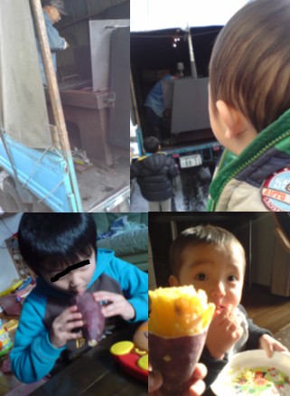 昨日、買い物に出かけた帰り家に車を入れていると、『ピーッ!』と音を鳴らして蒸気を吹き上げているトラックが見えました。おいも屋さんです。子供たちと一生懸命手を振って待って買いました。千円渡して大きいの一つって頼んだら、大きいやつを半分にしたのがひとつと、おまけなのか小さめのがひとつ。なんとお釣りは700円。安っ!黄色みの濃いあま~いお芋でした。そういえば、夕方のサザエさんもお芋の話題だったな。。。話は変わって、↓これは間違いのようですが寒い朝です。。。さて、3連休最終日。何して遊ぼうかな。。。?焼き芋をやいたあの頃を思い出して。。。ホカホカ石焼いもつぼ"2009年間目標:55km/月以上!"月間走行距離 24.0km(実績) / 55.0km(目標) 達成率 43.6%ランキング登録しました。↓ポチお願いします。
