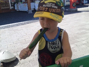 寒河江SAでつまみ食いの『キュウリの1本漬け』野菜嫌いの長男も一口かじって『美味しい!これ俺にも買って!』だって。。。今週はこの2人、交代で発熱。最初は兄貴。よくなったと思ったら次男。次男は今も38.2度です。。。俺は明日から、消防の大会で長野。長男は運動会。バタバタです。。。※いつもご訪問&コメントいただき有難うございます。いただいたコメントは楽しく拝見させていただいております。このところちょっと忙しい日々が続いており、レスや皆さまへの訪問遅れて大変申し訳なく思っております。近く必ずお伺いいたしますので、なにとぞ、今しばらくはご容赦いただけるよう、宜しくお願い致します。。。ひとつひとつ、丁寧にアンコを詰め込んだキュウリの1本漬けです。国産胡瓜キムチ(一本漬け)【200g】"2010年間目標:60km/月以上!"月間距離(メイン種目)17km(実績)/ 60km(目標)達成率 28.3333% 4/18 第25回温海さくらマラソン 完走!応援有難うございました!7/18 第25回酒田砂丘マラソンは家族4人全員完走!9/19 第25回田沢湖マラソンは長男とペアで車中泊予定。ランキング登録しました。↓ポチお願いします。にほんブログ村↓酒田こども歌舞伎実行委員会ブログのリンクはこちら!酒田こども歌舞伎