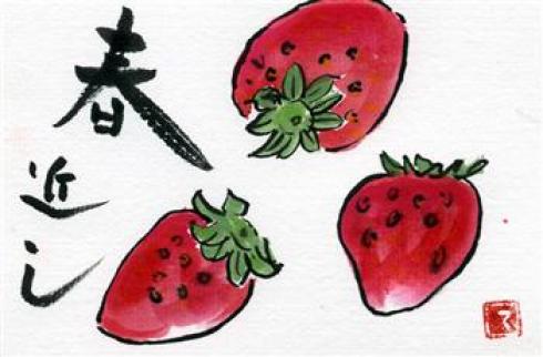 こんばんは! 今日の、大阪は、寒かったですよ~! 寒くて、暇なので、雑用ばかりで、1日過ぎた感じです! 例の、紙やなんですが、 さすがに、12月は、カレンダーや、年賀状や、 お年玉袋やらで、 お蔭様で、ちょっと、売れました! 年賀状は、私の絵と字でのを、少し高くしても、 パソコンで、作った柄よりも、よくうれたんですよ! 自分でも、びっくりしています! それに、気をよくして、先日から、色紙に絵を書いたら?と、 お店の方に勧められ、書いてみたら、 なんと、売れるのですよ♪ 恥ずかしくて、厚かましいなぁ~と、思いながら、、、、 これこそ、うれ恥ずかしい ですよ! 先日も、色紙に、お正月らしい絵を書いて、 挨拶を書いてほしいとの、ご要望で、 簡単な、絵を書き、お店の名前を入れて、 書かせてもらったのですが、とっても、喜ばれて、 又、お願いしますって、いわれたって聞き すごく喜んでいる、テルちゃんです! 私は、実際に、お客様とは、顔を合わさないので、 いいのかしらって、思っています! だから、今日も、色紙に何枚か、 絵を描いていました。 いつものように、葉書に書くのと違うので、 又、難しいのですが、気持ちは、いいですね! 又、はまっちゃうかもよ♪ それも、売れればの話ですが、、、、、 その色紙の絵を、撮るのを、忘れてしまったので、ごめんなさい! 変わりに、今よく売れている 苺ちゃんで、ごめんなさいね!