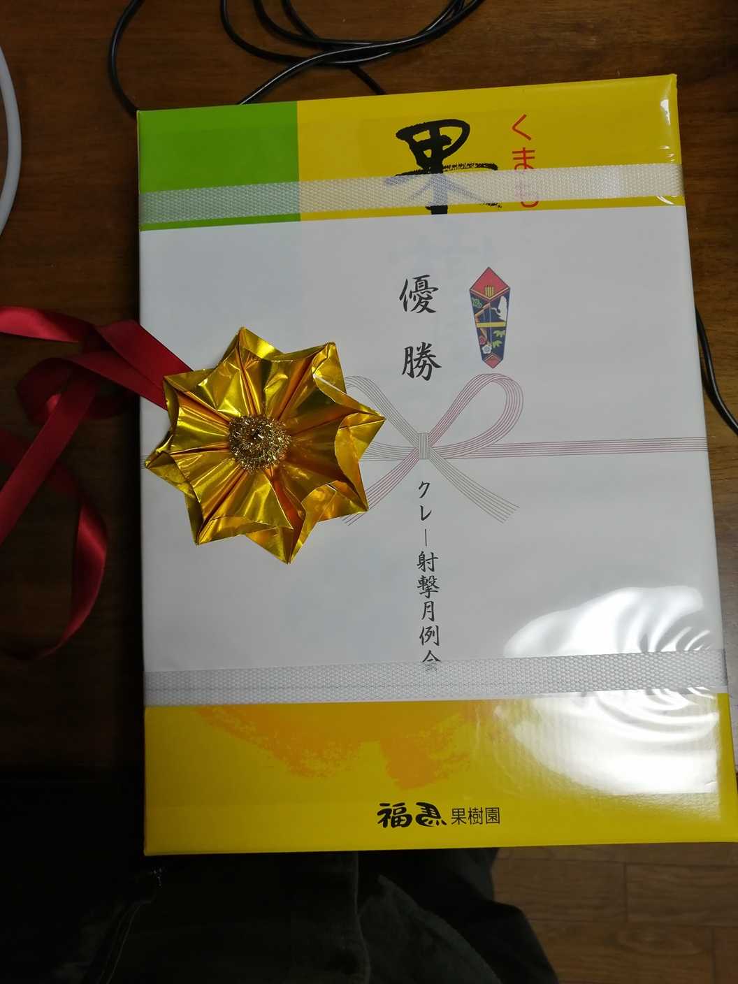 熊本県総合射撃場のミズノカップクレー射撃例会に参加しました。パッとしないスコアでしたが優勝することができました。今日は20回目の記念例会ということで金メダルもいただきました♪賞品は前回と同じく、地元益城の福馬農園さんの柿でした。