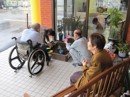 今月から本格的に菜園活動、開始です!!利用者さんと時間作って、菜園場所を作成しました。そして今回植えたのは、トマト・キュウリの二種類の野菜!!そして花はダリア、朝顔の種をまきました。写真たくさんアップ!! いい感じに仕上がりました!!これから、利用者さんと一緒に頑張って育てていきます。収穫が一番楽しみですね!!今回ミニトマトの中に、「苺トマト」という甘いトマトも植えています。食べたことないので楽しみです。というざぁーまは、トマトは一切食べれません!!見て楽しむ!! 利用者さんの笑顔を見て喜ぶ!!これだけでおなかいっぱいですさぁーまた菜園に変化がありましたら報告します。 では今日もざぁーまな一日でした