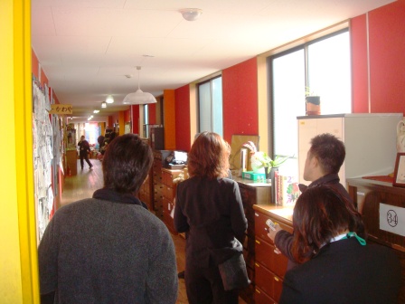 先週の土曜日に 山口県にある、「夢のみずうみ村」に学生時代の同期生Sさんと見学に行ってきました。本当は、10月に見学予定していたのですがスケジュールの都合で12月にやっと見学に行けました。夢のみずうみ村のスタッフさんのご協力の元調整が出来ました。本当にありがとうございました。朝7時に久留米を出発して、2時間半位で山口に到着しました。高速を走りながら車内では、二人でワクワクしながら色んな話をしていたらアッという間についたという感じ・・・でした。いざついて施設を目指して走るが、そこは山の中でした。ある程度TVや藤原先生のお話を聞いていただけに、驚きました。本当に山の中に大きな建物が見えてきました。冬の送迎では、絶対にスタットレス・・・はかないと厳しいです。もしくは、チェーンですかねぇ・・・。いざ施設内へ!!今回は私達の他にも、高知県のデイサービスのスタッフの方もおられ一緒に見学を行いました。みずさき案内人の利用者様がおられ、最初に名刺交換!!名刺大事にします!!そのあとに、少しオリエンテーションを行い自己紹介から行いました。早速施設内見学へ・・・ある程度、何が備わっているかは把握していましたが・・・実際に見ると、本当に手作りの物が多くあります。スタッフのアイデアと実行力、そして何よりその一つ一つの仕掛けには「意味・目的」があり目に見える所に貼っています。ただ、たんに仕掛けがあるだけでは最初は継続しても「何のために」がなければ意味もないし効果も得られない。もちろん興味をひかせる、事はとても大事ですしとっかかりの一つの感情かも知れませんがその後、ジャーどうなのか。ここが、私なりに感じたミソかなと思いました。沢山持って帰れそうなものが沢山あったので是非取り組みたいと思います。後は、「役割」というところです。今回水先案内人の方のお話や行動、言動を見ていて感じたのは 職員さんが施設見学を行っているように感じたこと。様々な所に役割がありました、料理教室や木工、陶芸様々なところに先生(利用者様)がおられました。そして、パソコン教室で出会った利用者さんは、施設内の新聞作りの編集長を行っていました。話しに聞くと他利用者さんからの意見も取り入れ作成しており、出来上がり途中の新聞記事はパソコンでしっかり編集され、レイアウトまで綺麗にできていました。ちなみに男性ではなく、女性です。しかもパソコンは、デイに来てからスタッフさんに教えて頂いたとの事です。(驚)沢山、沢山書きたい事があるのですが大分、収集がつかなくなってきたので、これくらいで・・・見学を終えて感じたことは、「施設の中に国(社会)があった」の一言です。改めて、自分の怠慢やら傲慢さを一瞬で吹き飛ばしてくれたそんな一日となりました。見学を終え、施設前で記念撮影!!!この後、久留米に帰って夜から「てっぺん会」!!!今回は、新しく参加されている方も多くとても良い刺激を受けました。今年最後のてっぺん会でした。来年もぜひ参加して、医療・介護業界を盛り上げれるように頑張ります。また、みんなの話しを聞いて熱く語り!勉強していきたいと思います。 それでは、今日もざぁーまな一日でした