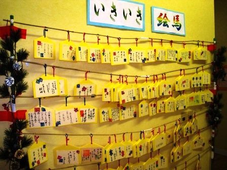 正月の行事にて、今回内容として「絵馬」を作成しています。担当スタッフにより、手作りの絵馬に利用者様がそれぞれの思いを書かれていました。一番多かったのは、「健康でありますように」「リハビリを頑張りたい」「家族仲良く暮らせますように」と沢山の思いや抱負が書かれていました。改めてこの絵馬に書かれた、利用者様の思いを手助け出来るようにスタッフ一丸となって取り組みたいと思います。改めて、展示されている絵馬を見てこの思いを胸に刻みました。今回この絵馬を発案した、担当者の皆さん本当にいい内容となったと思います。お疲れ様でした。今後も更により良い行事が出来るように、スタッフ皆で頑張っていきましょう。 それでは今日もざぁーまな一日でした