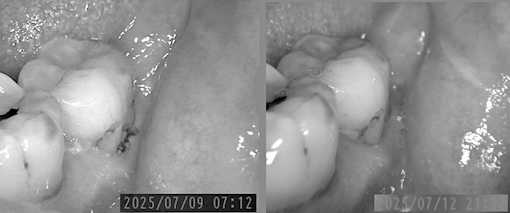 7月8日には5mmを超えた左奥歯(7番)のポケットは4mmに