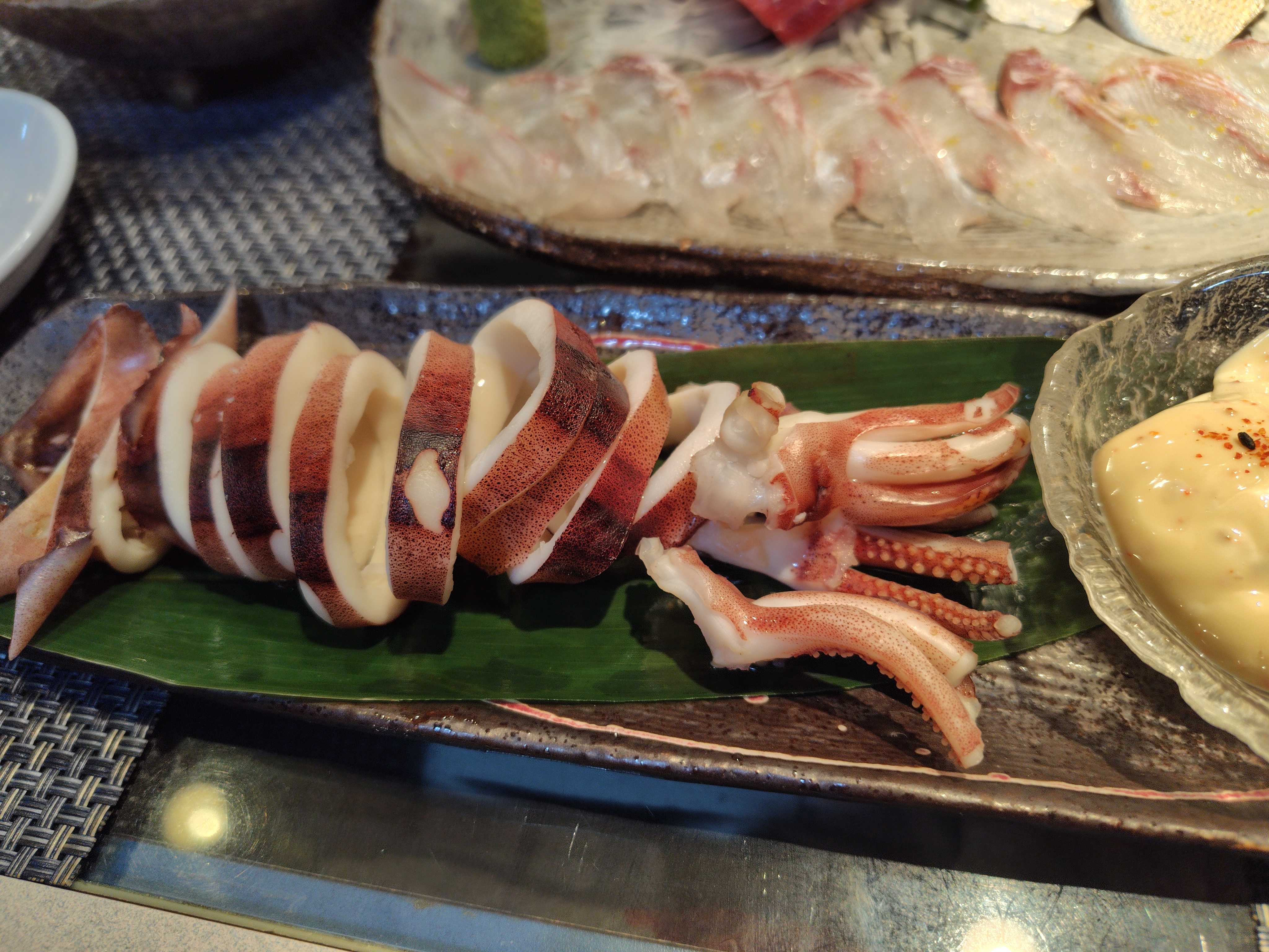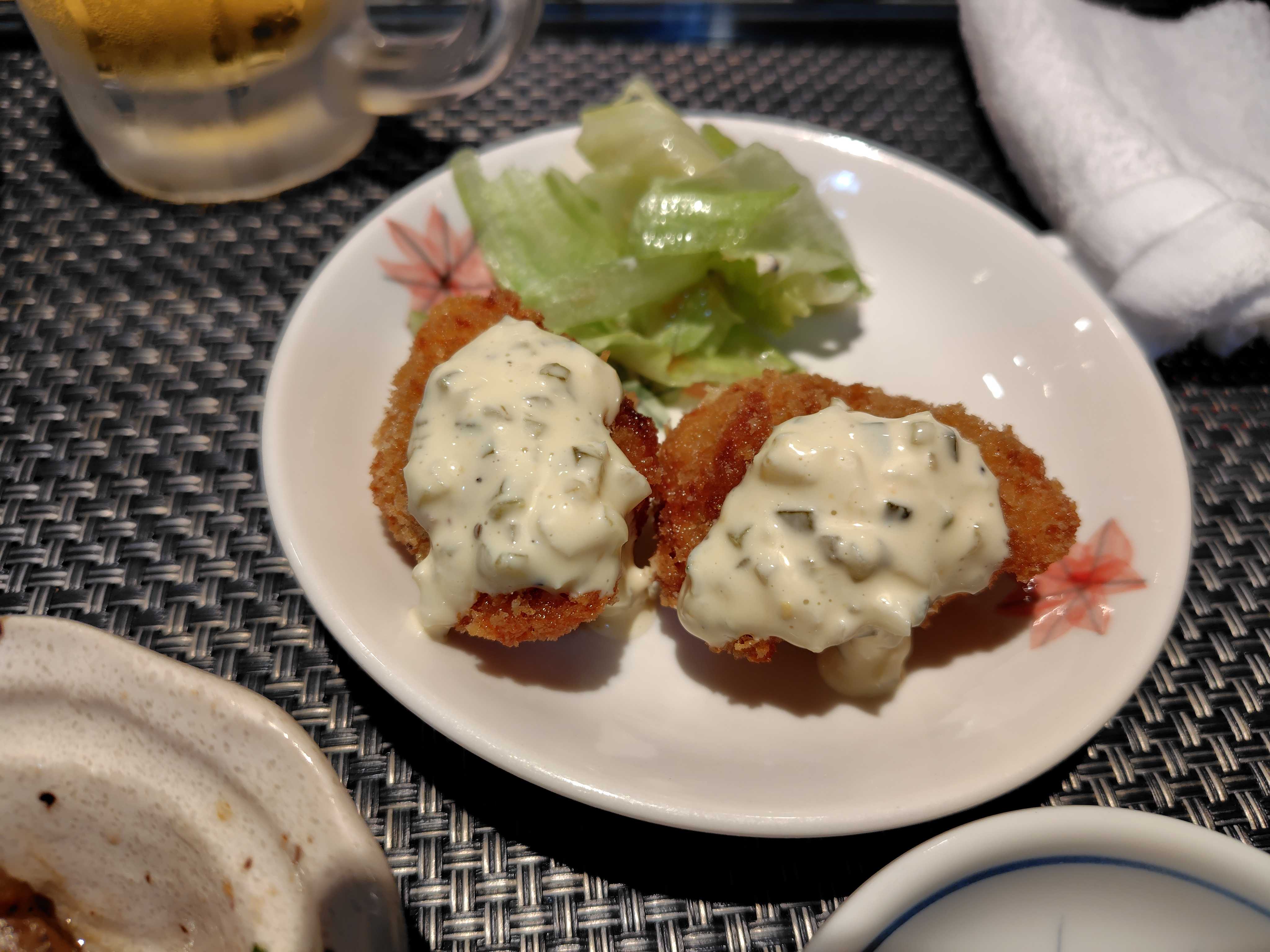 幸せな和食、甘いから甘エビ、海鮮サラダだ。