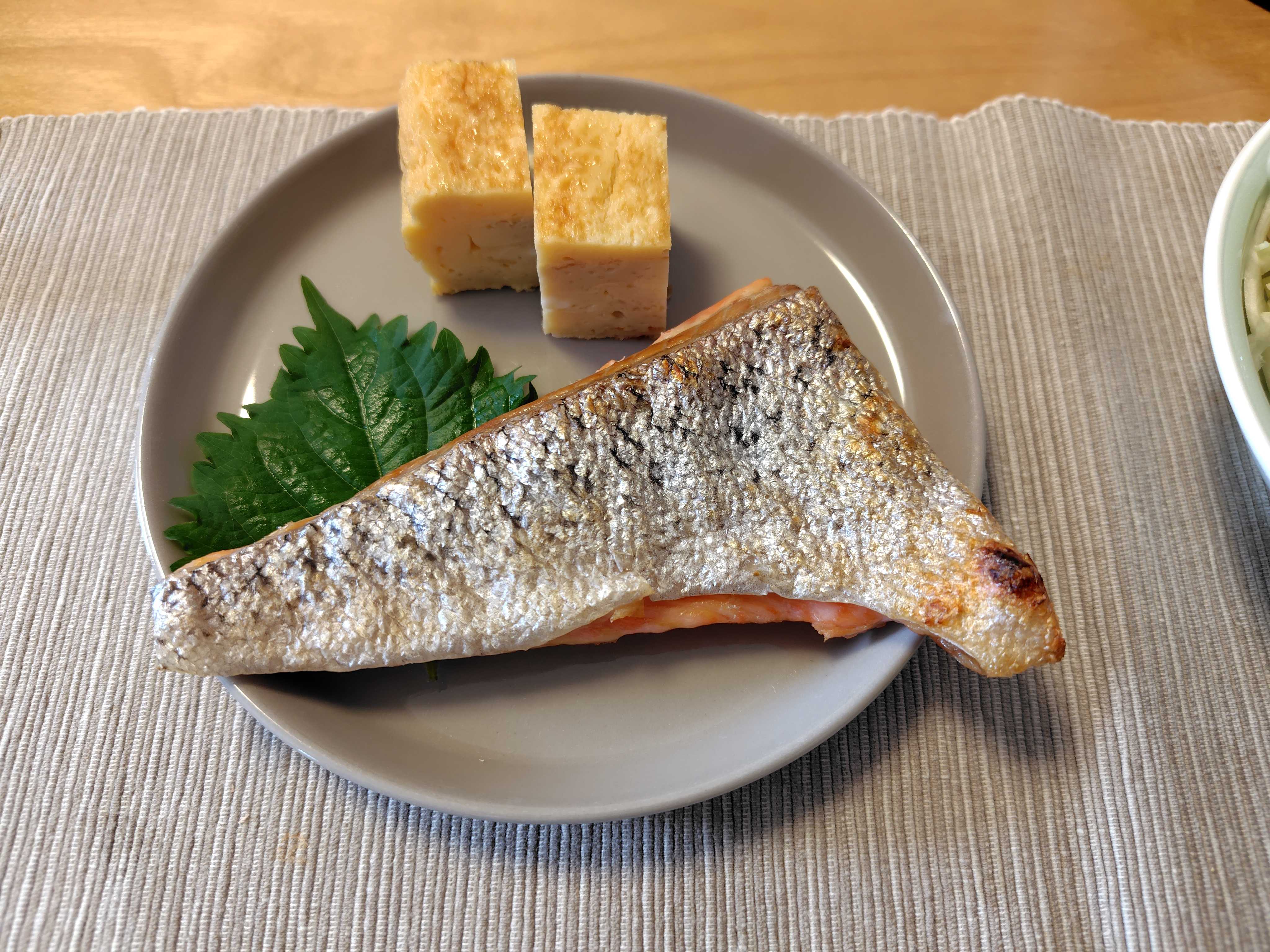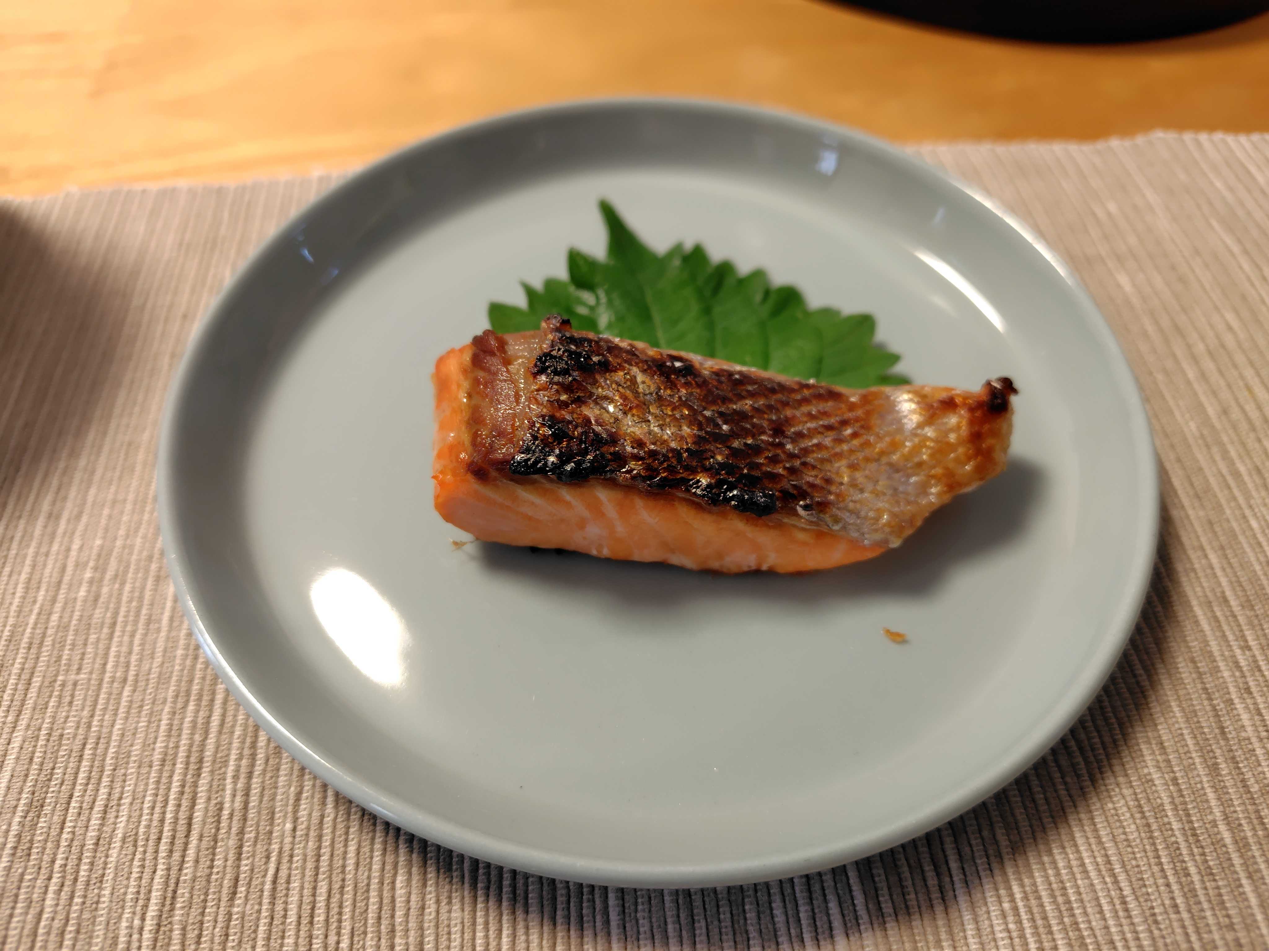 幸せな和食、サーモンのハラス焼きだ。