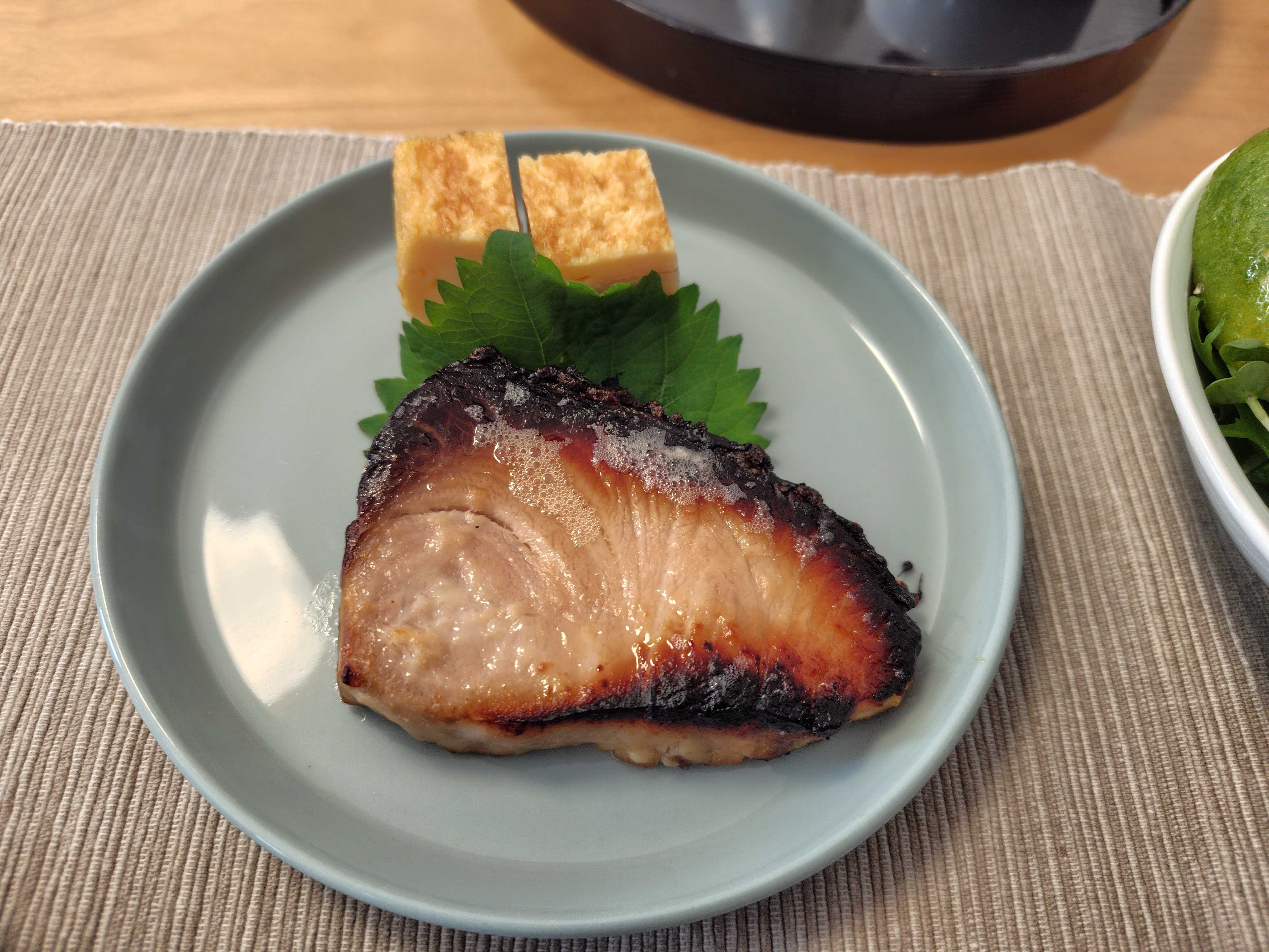 幸せな和食、ブリの西京焼きだ。