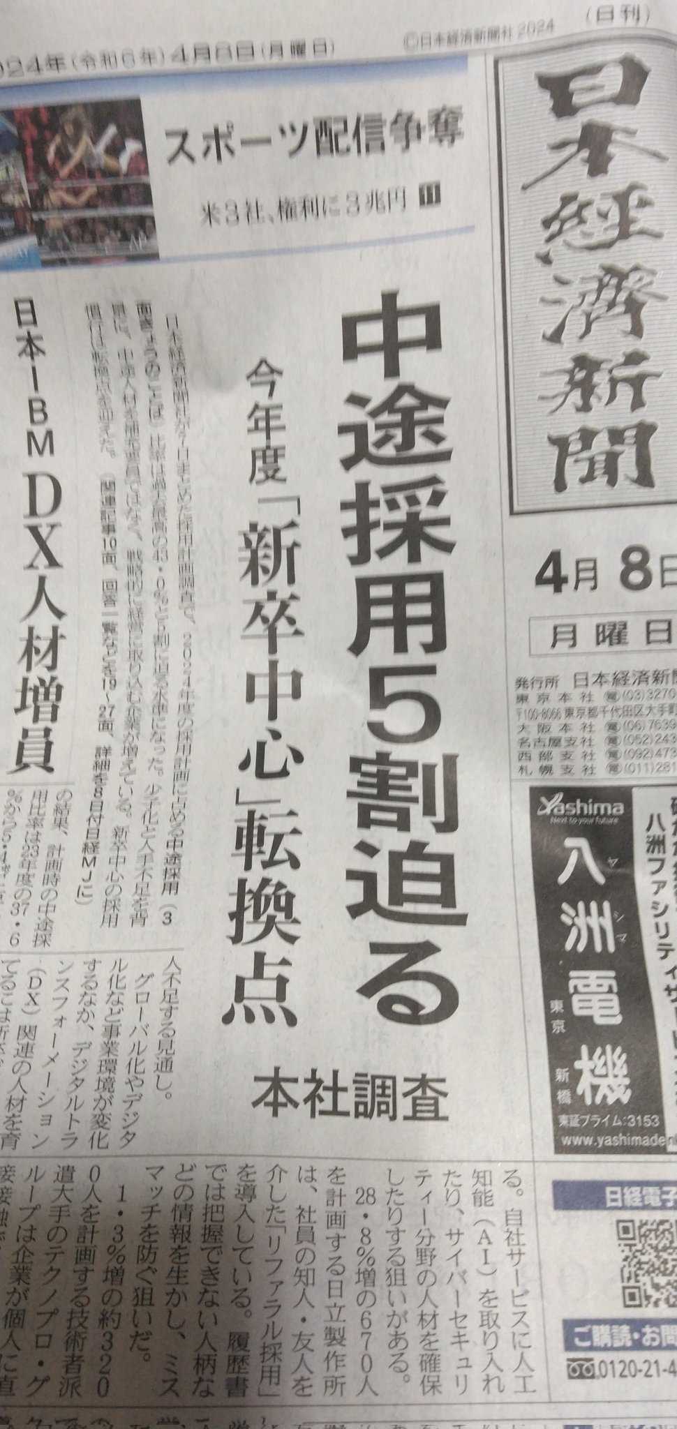 1️⃣中途採用🖐️5割に迫る2️⃣🐉24年度は『新卒中心』の転換点🎉