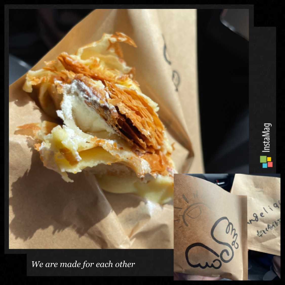 綺麗に焼きあがったクレープの生地の中は、ふわっとしたスポンジケーキ!! 中にあるパイン・黄桃・アップルがフルーティー♪日