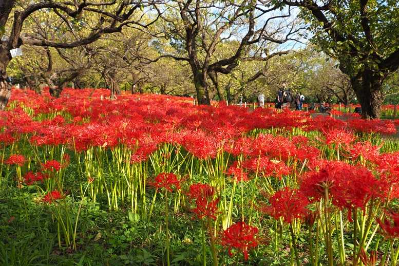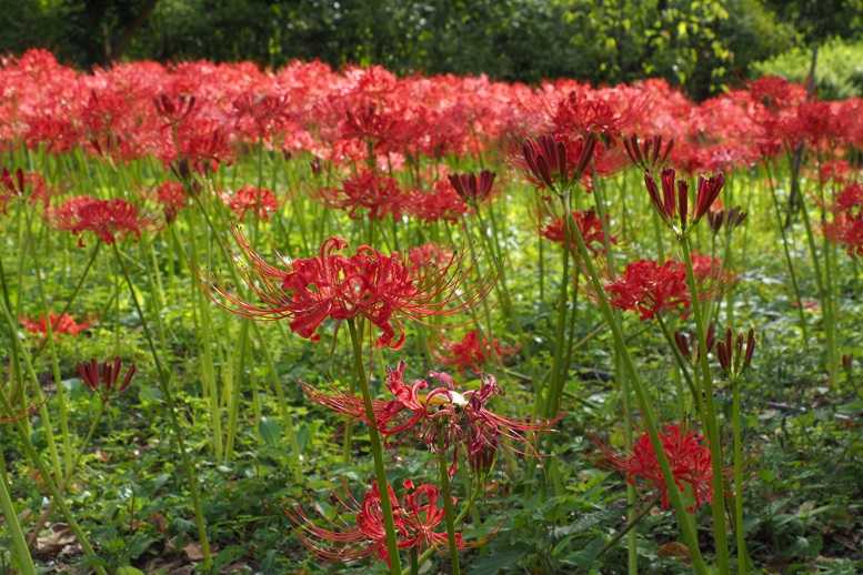 東京の今朝の天気、府中市郷土の森博物館のヒガンバナ1