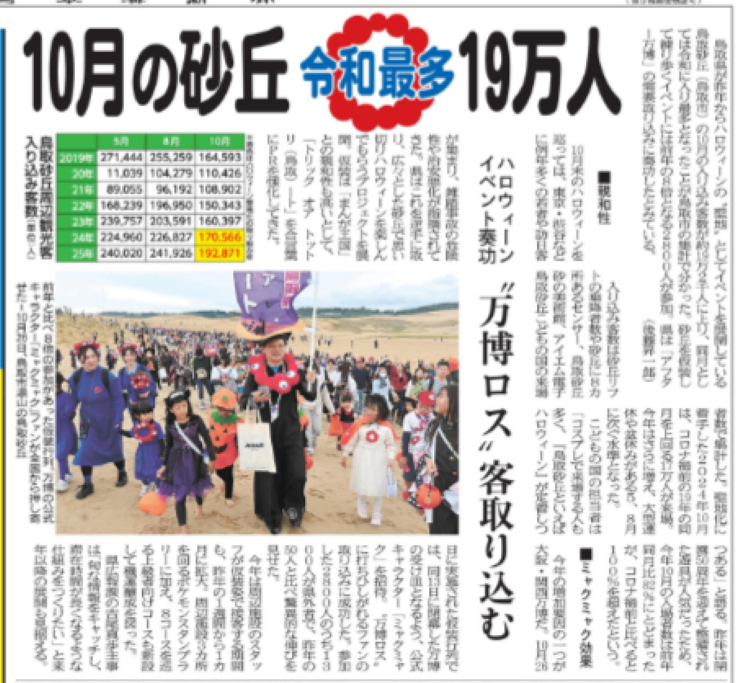 トピックス:鳥取砂丘 万博ロスで10月19万人の人出
