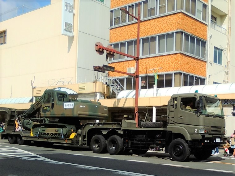 陸上自衛隊車両が川内市内の商店街をパレード!