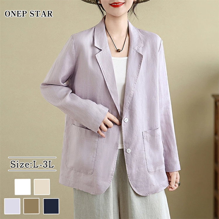 ◎レディース テーラード シングル ジャケット リネン 2つ釦 ワンピス…