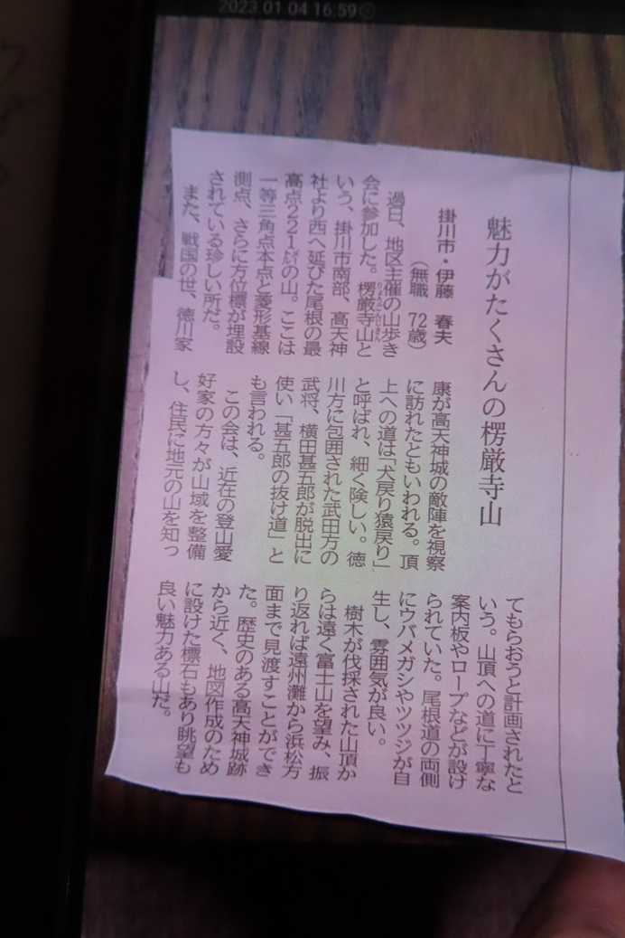 ★掛川市・高天神城跡から楞厳寺山(りょうごんじやま)221M