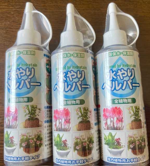 6時過ぎから、土壌保水・保湿剤「水やりヘルパー」を鉢植えに散布し…
