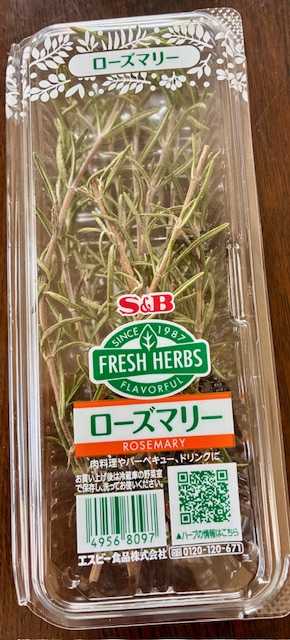 ローズマリー。小枝に分け、下の葉は取り、熱海プリン容器に生けた。…