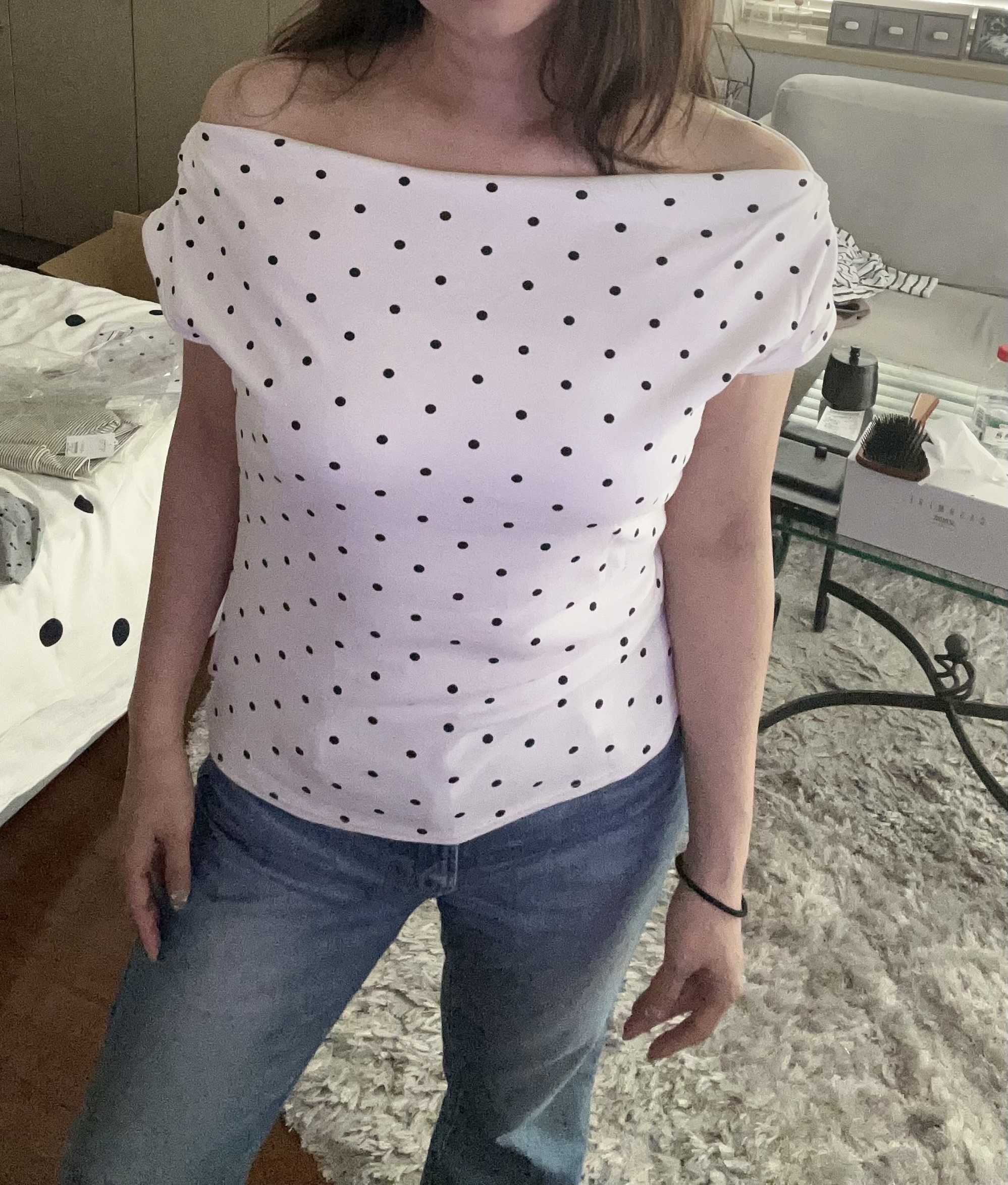 プチプラ、ドロップショルダー ノースリーブ ドットトップ👕