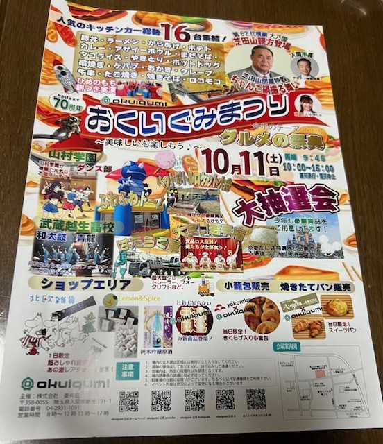 回覧板の中のおくいぐみまつり(奥井組祭)のチラシ。今年は今日だけで、雨天決行なのですね。昨年も行け…