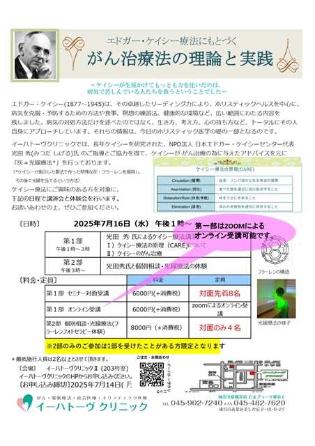 がん 催眠療法 統合医療 ホリスティック医療 イーハトーヴ クリ…