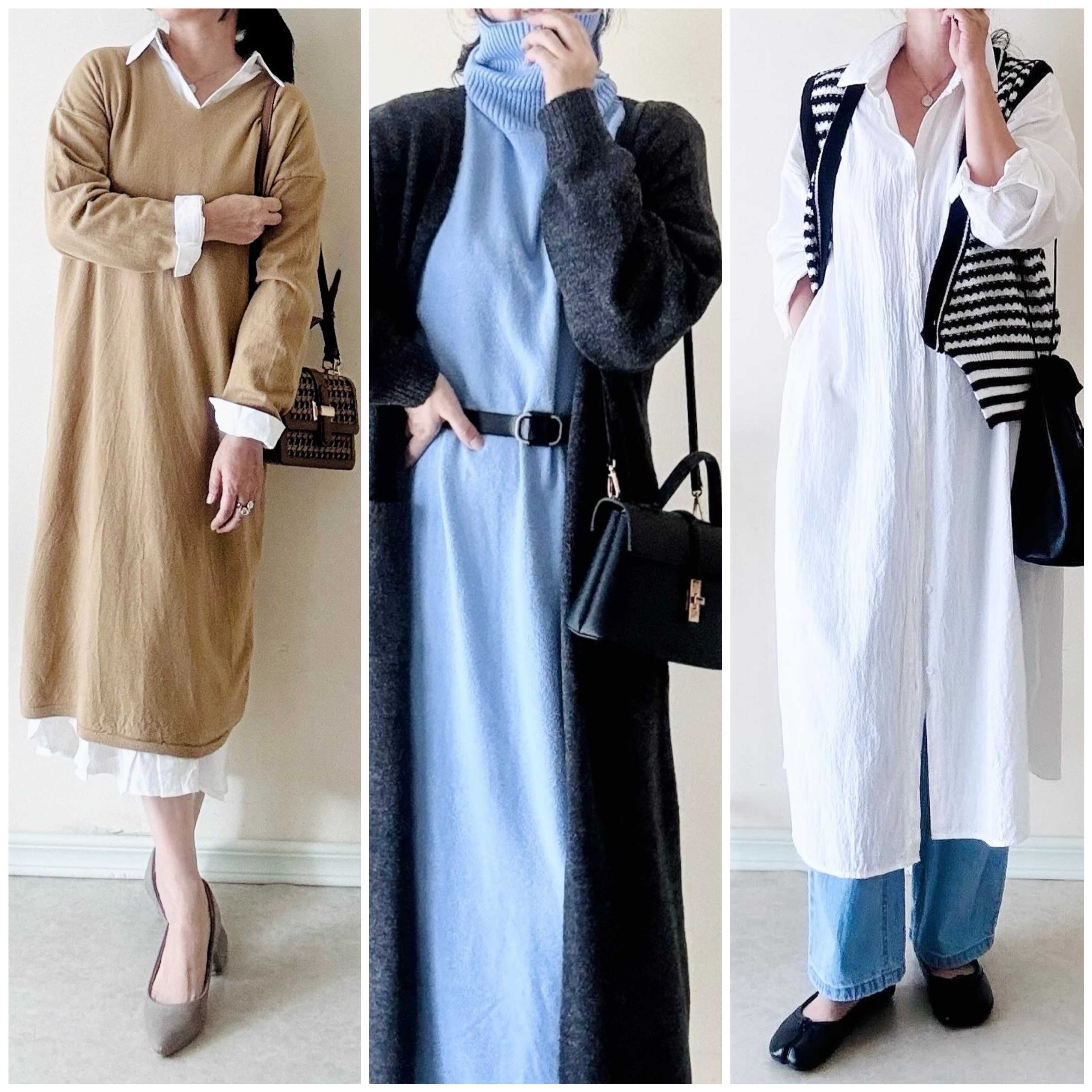 今季楽天で購入したシャツワンピとニットワンピコーデ3選