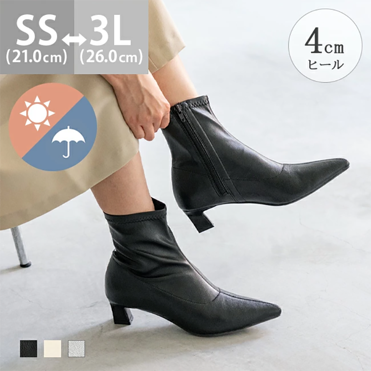 レディース ショート ブーツ ストレッチ ポインテッドトゥ 7cmヒール