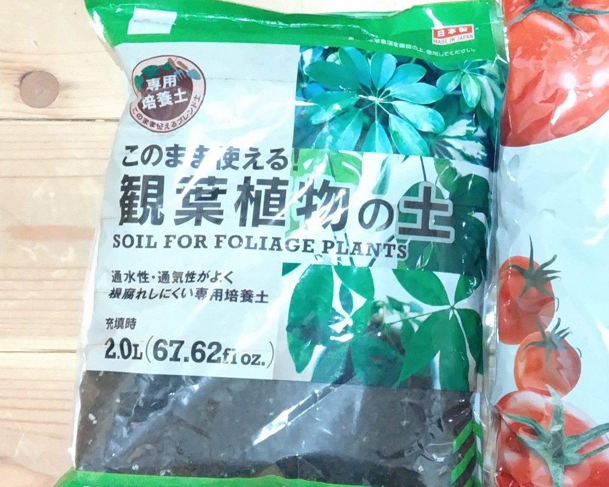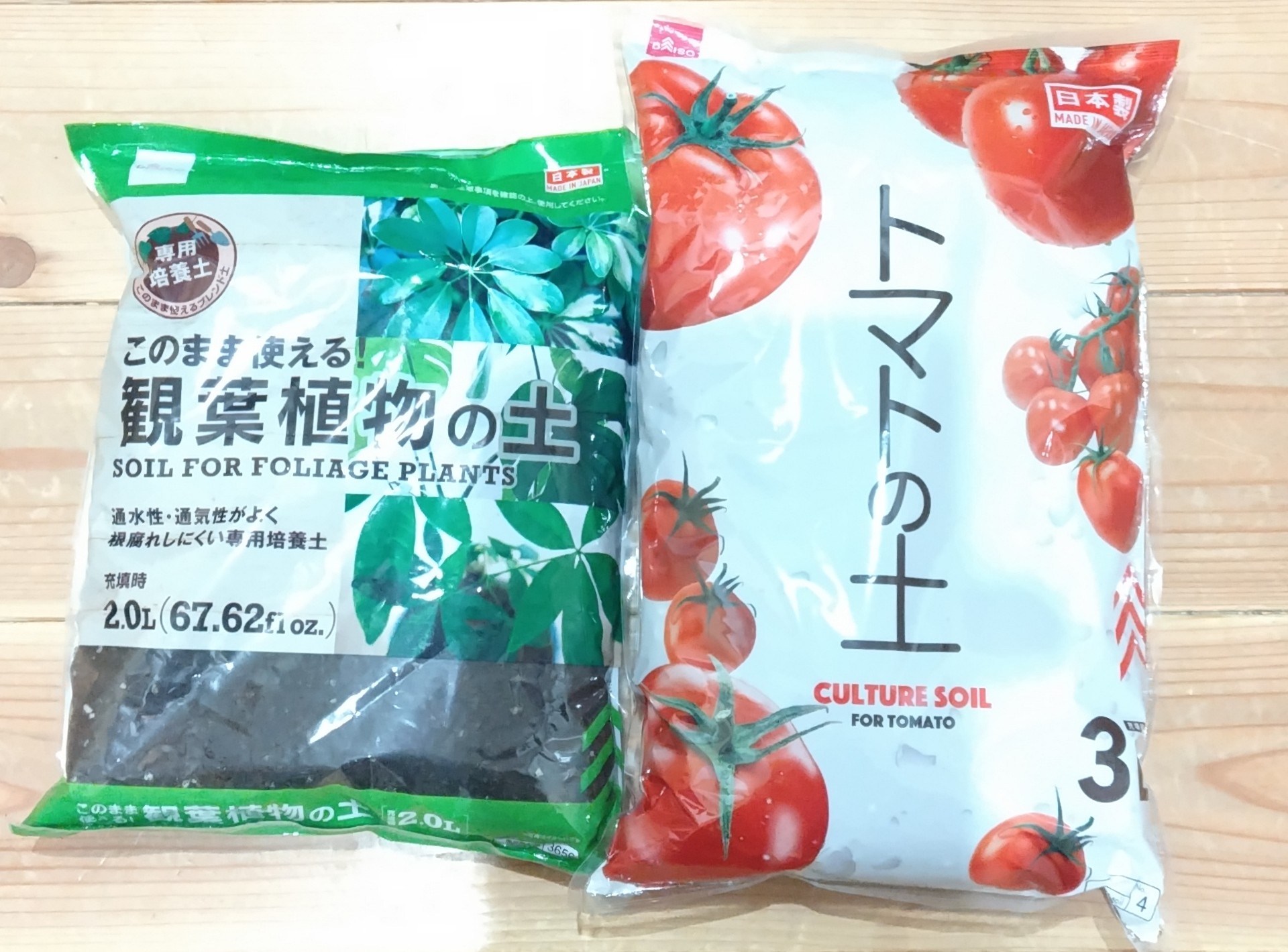 ダイソーで購入した土 トマト用と観葉植物用