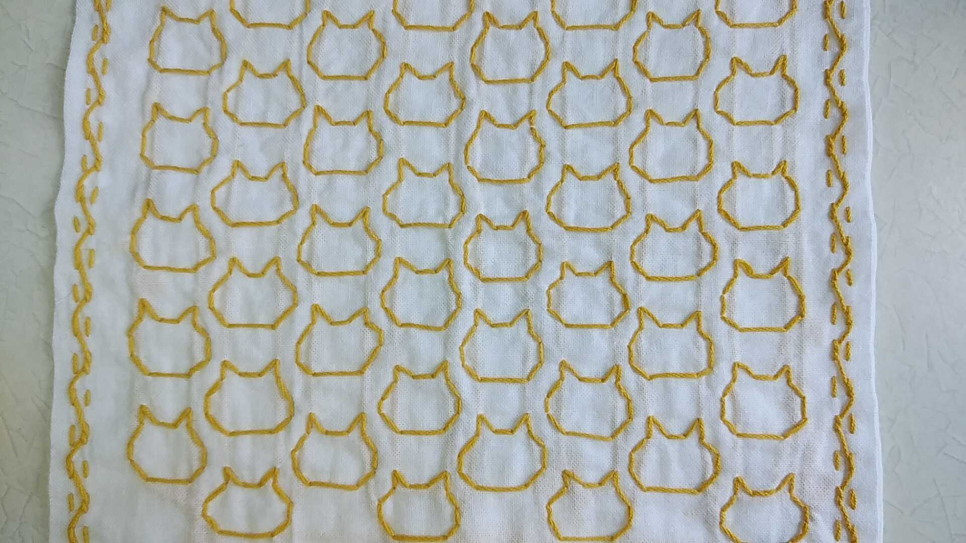 ☆刺し子のハンカチ作りました(8)~猫・ねこ・ネコ!オリジナル猫模様