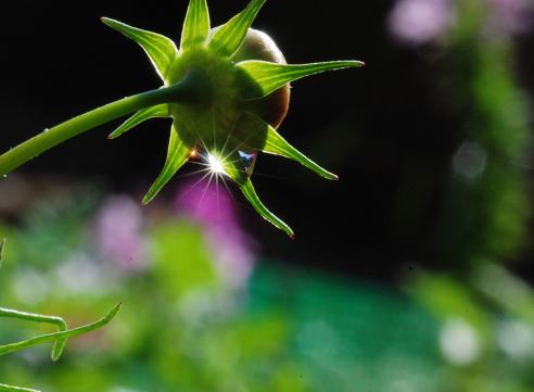 秋晴れの朝、庭のコスモスにダイヤモンドがキラリ!!