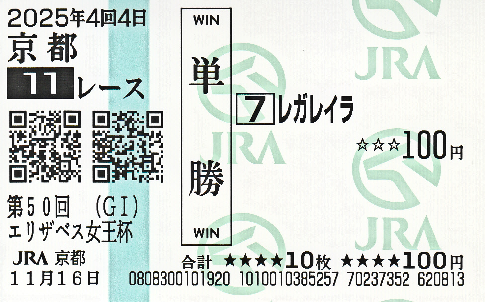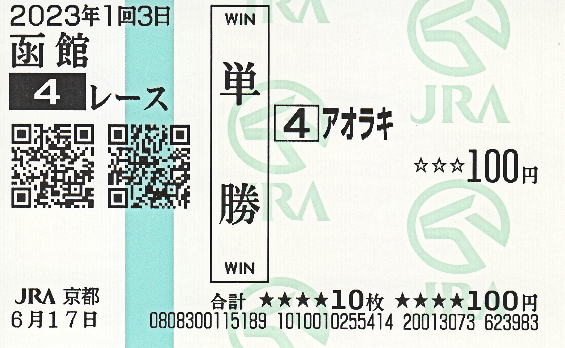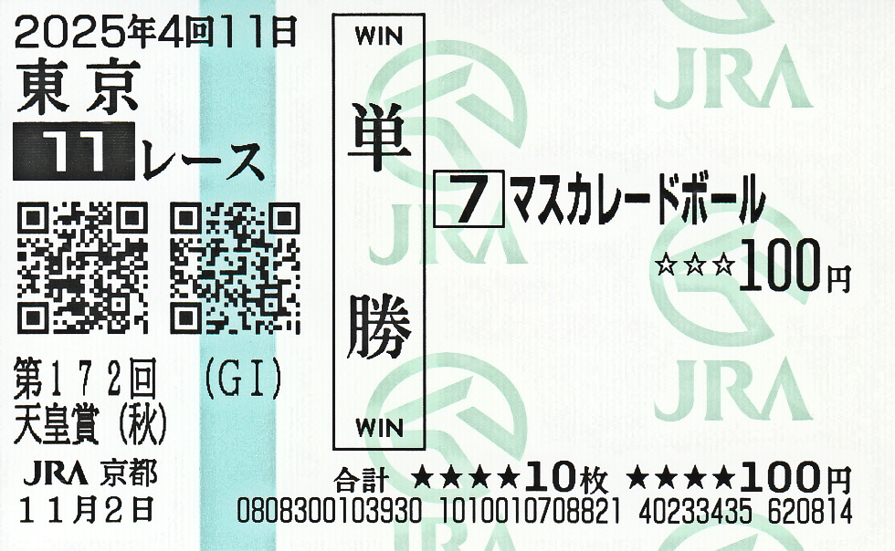 記念単勝馬券(100円)にこだわる人のテーマです。