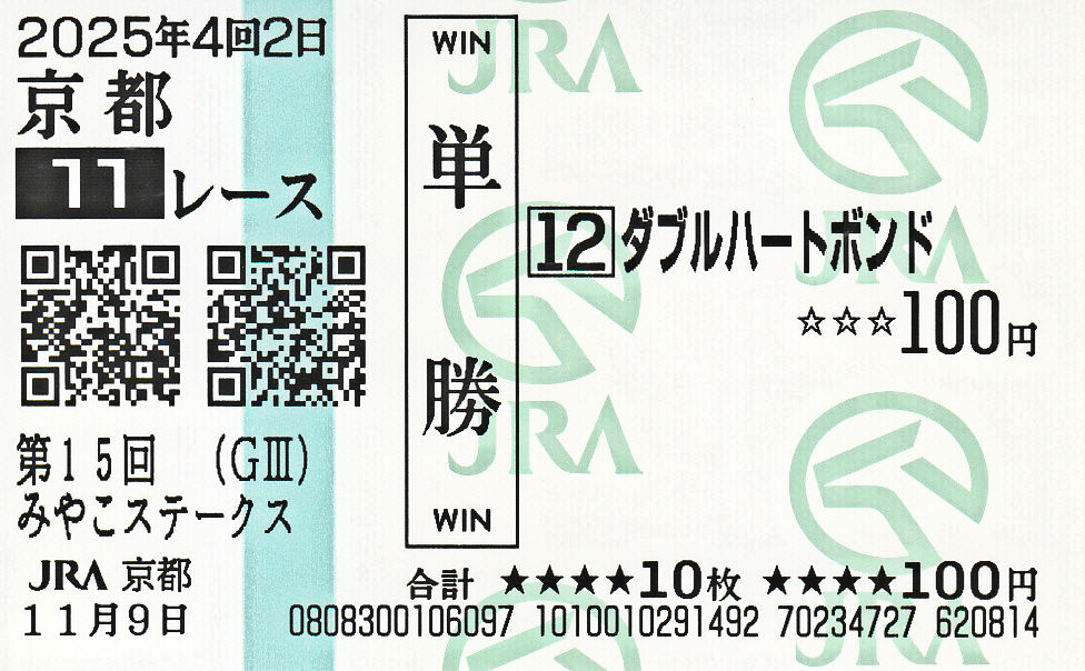 【記念単勝馬券】 ダブルハートボンド(みやこS(G3))