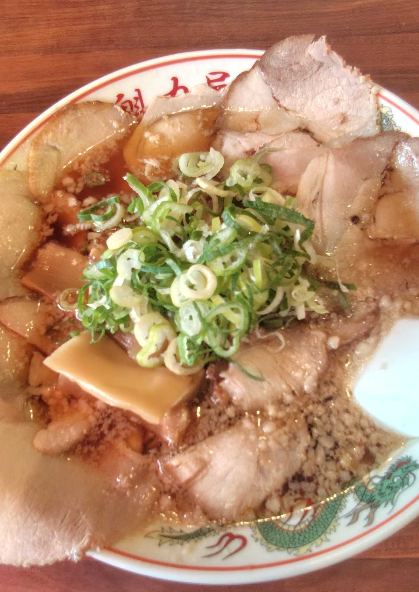 背脂醤油ラーメンと白ご飯とタクワンの組み合わせ